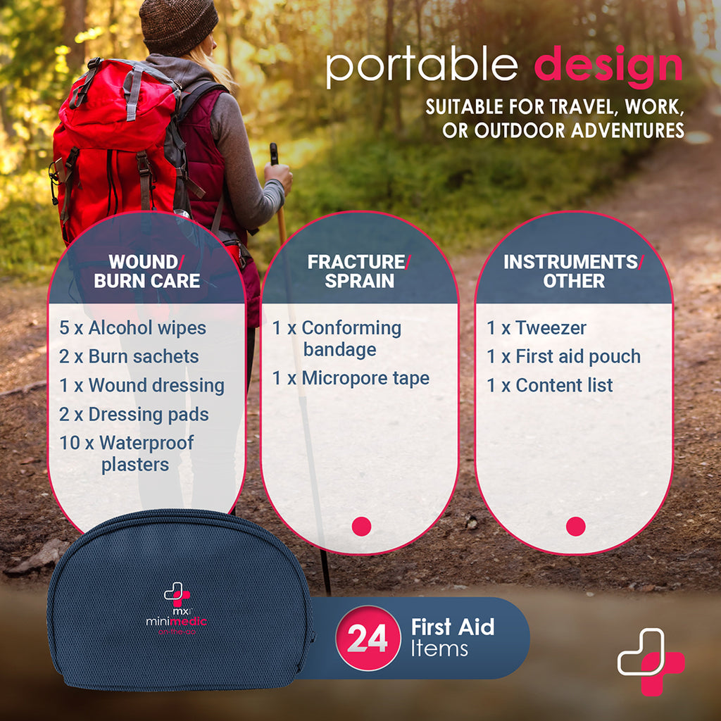 The mx Health Minimedic First Aid Kit offers a compact, reliable solution for addressing minor injuries while on-the-go. Designed with convenience in mind, the lightweight kit contains essential first aid supplies to handle cuts, scrapes, and minor emergencies.