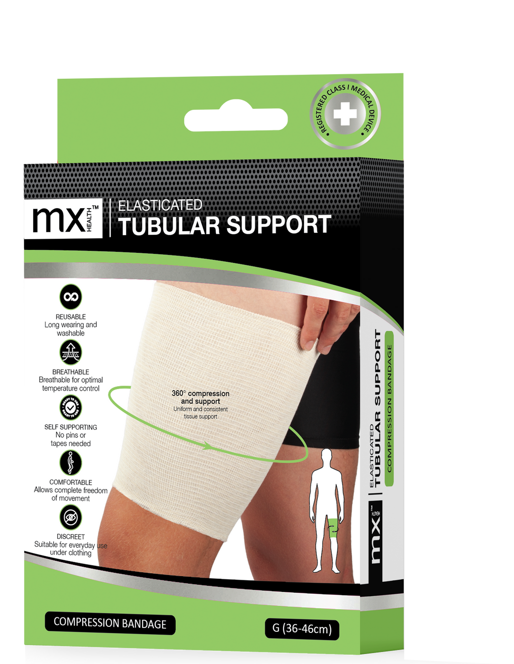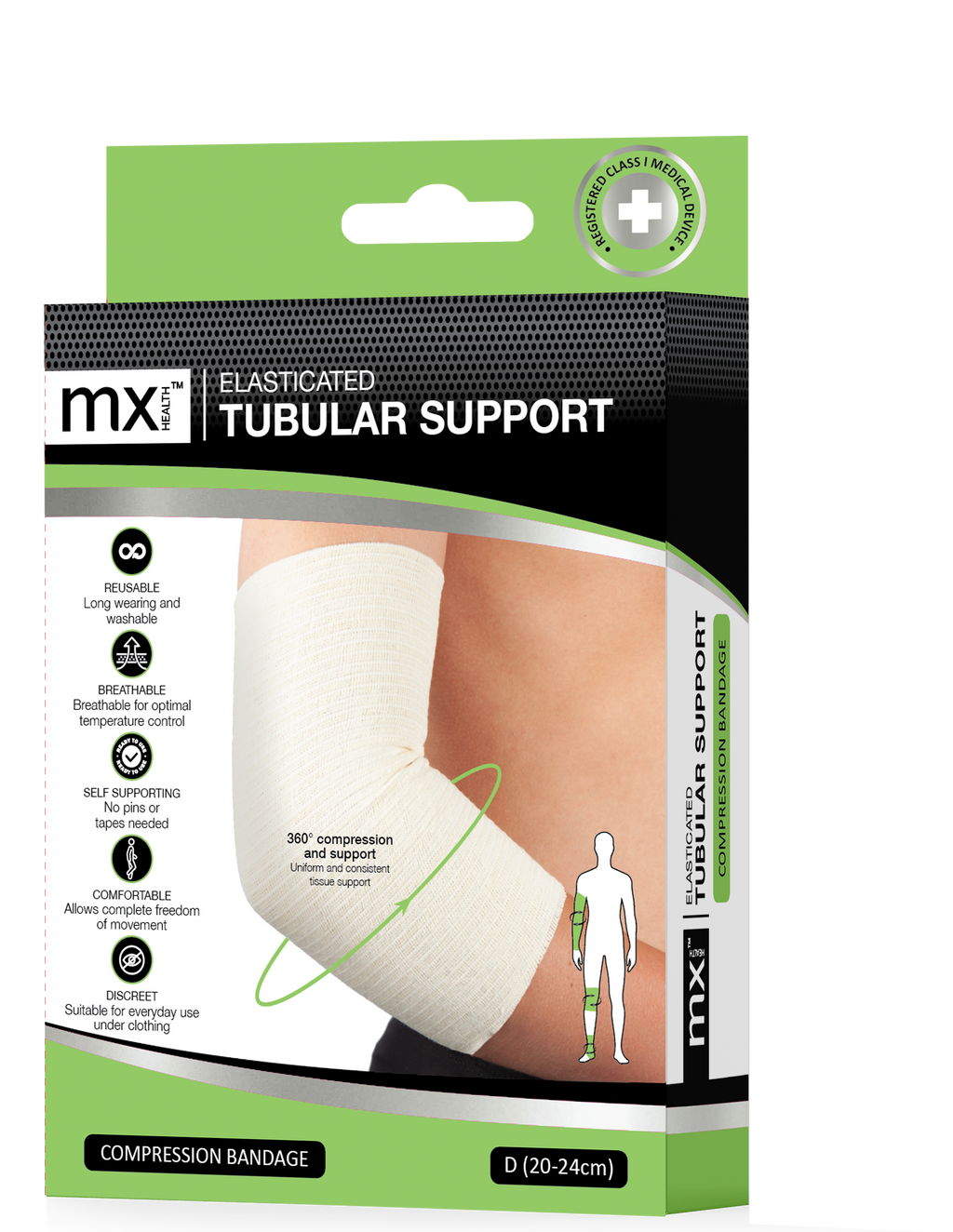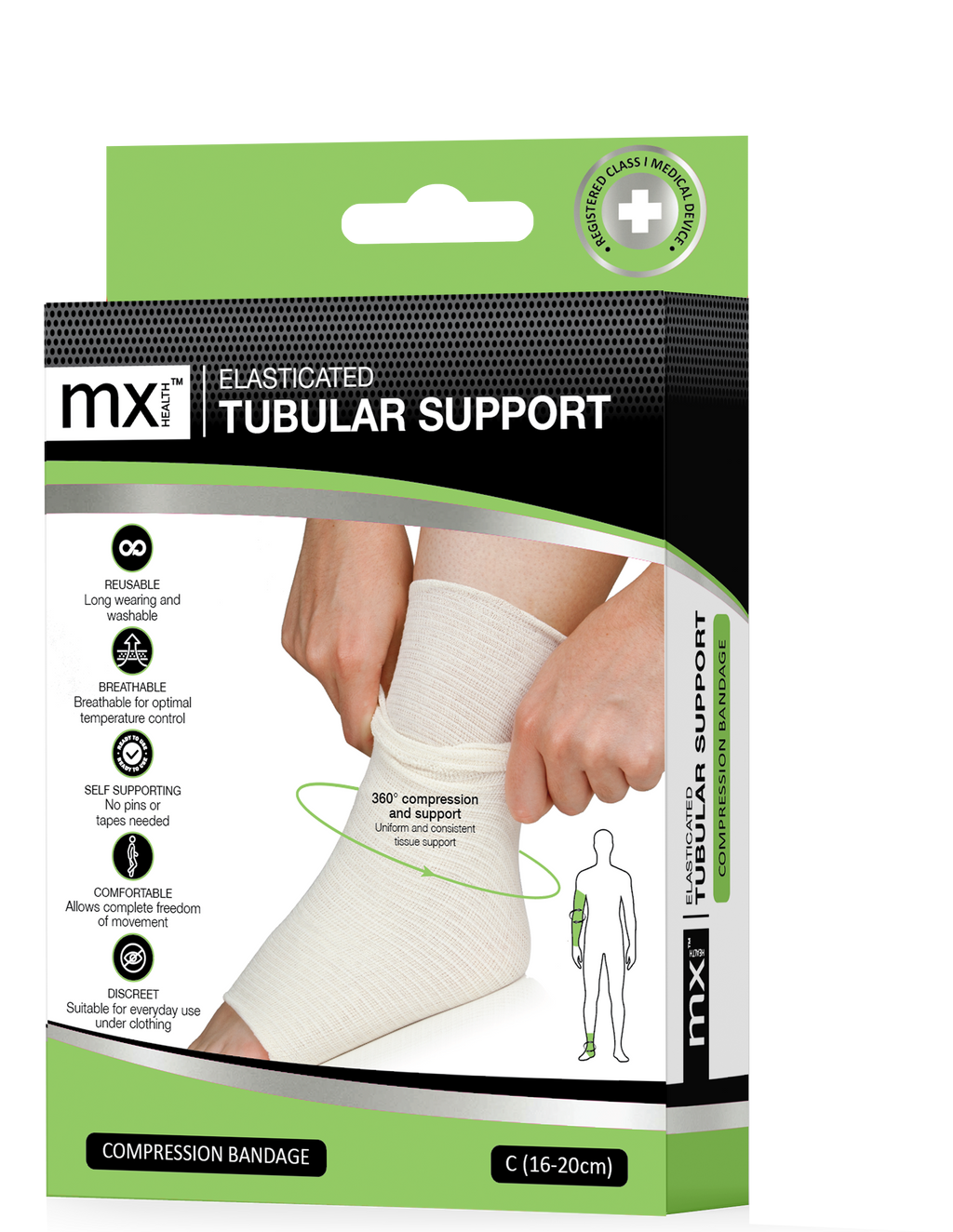 The mx Health Tubular Support Compression Bandage is a premium, easy-to-use solution for effective support and compression of soft tissue injuries, sprains, strains, and joint conditions. Designed for both professional healthcare environments and home use, the elasticated bandage provides consistent, even pressure to help reduce swelling, support injured areas, and aid in recovery.