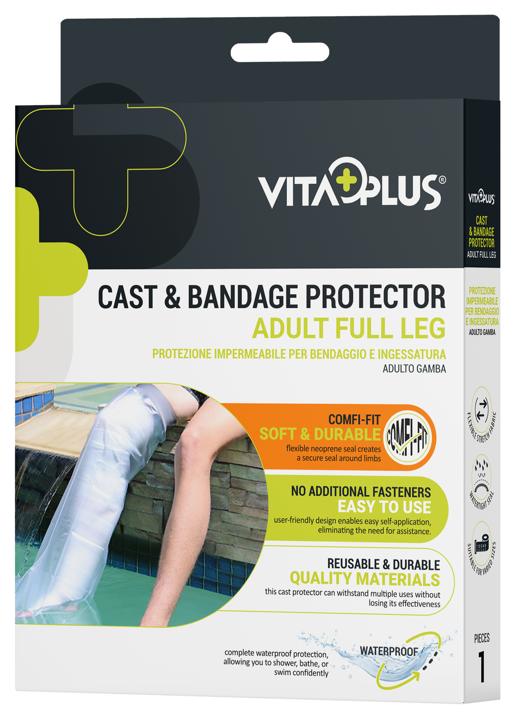 The VitaPlus Comfi-Fit Cast & Bandage Protector is designed to keep your casts, dressings, and bandages dry and secure during bathing, showering, or swimming. Crafted with a watertight seal, the flexible material ensures a comfortable fit without restricting movement or causing irritation. Easy to use and reusable, the Comfi-Fit Cast & Bandage Protector is available in various sizes to accommodate different needs, making it an essential solution for anyone recovering from injury or surgery. Stay dry and comfortable with the trusted protection of VitaPlus.