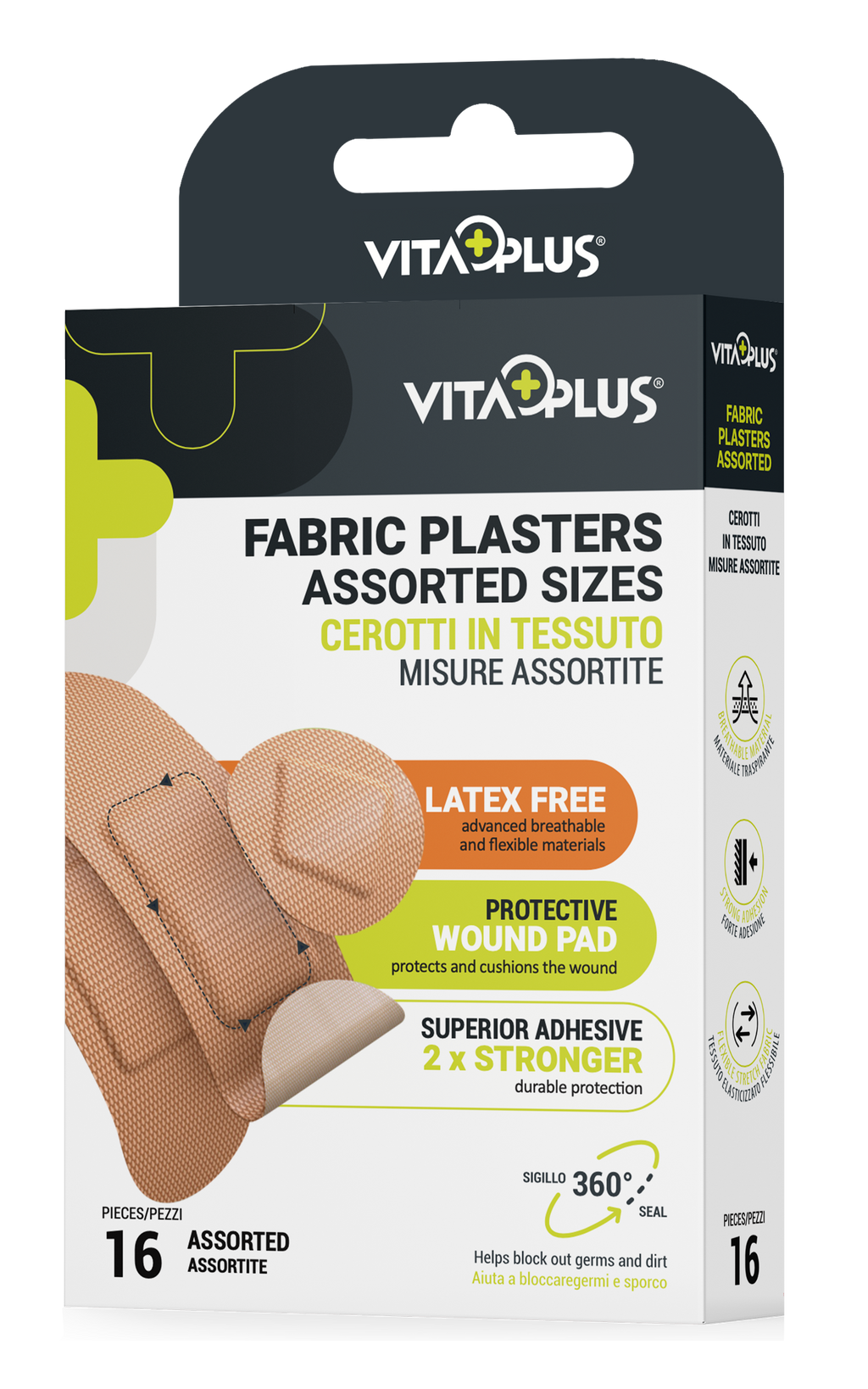 The VitaPlus Fabric Plasters offer durable and flexible protection for everyday cuts, scrapes, and minor wounds. Crafted from soft, breathable fabric, these plasters comfortably conform to the contours of the skin, allowing for natural movement while staying securely in place. The strong adhesive ensures reliable coverage, while the cushioned pad effectively shields wounds from dirt and bacteria, promoting faster healing.