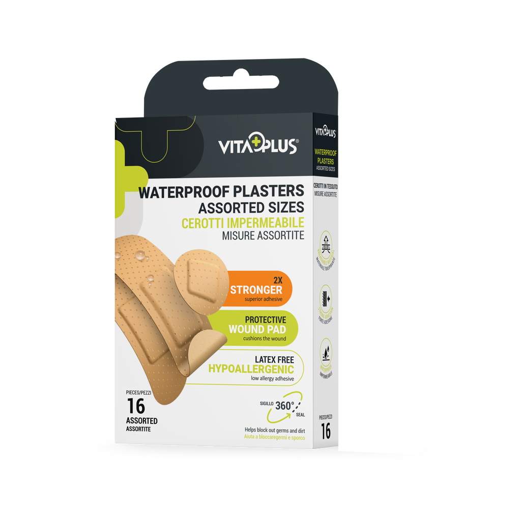 Available in a variety of sizes, the VitaPlus Waterproof Plasters provide a versatile and comfortable solution for dependable wound care, making them a staple for all first-aid kits.